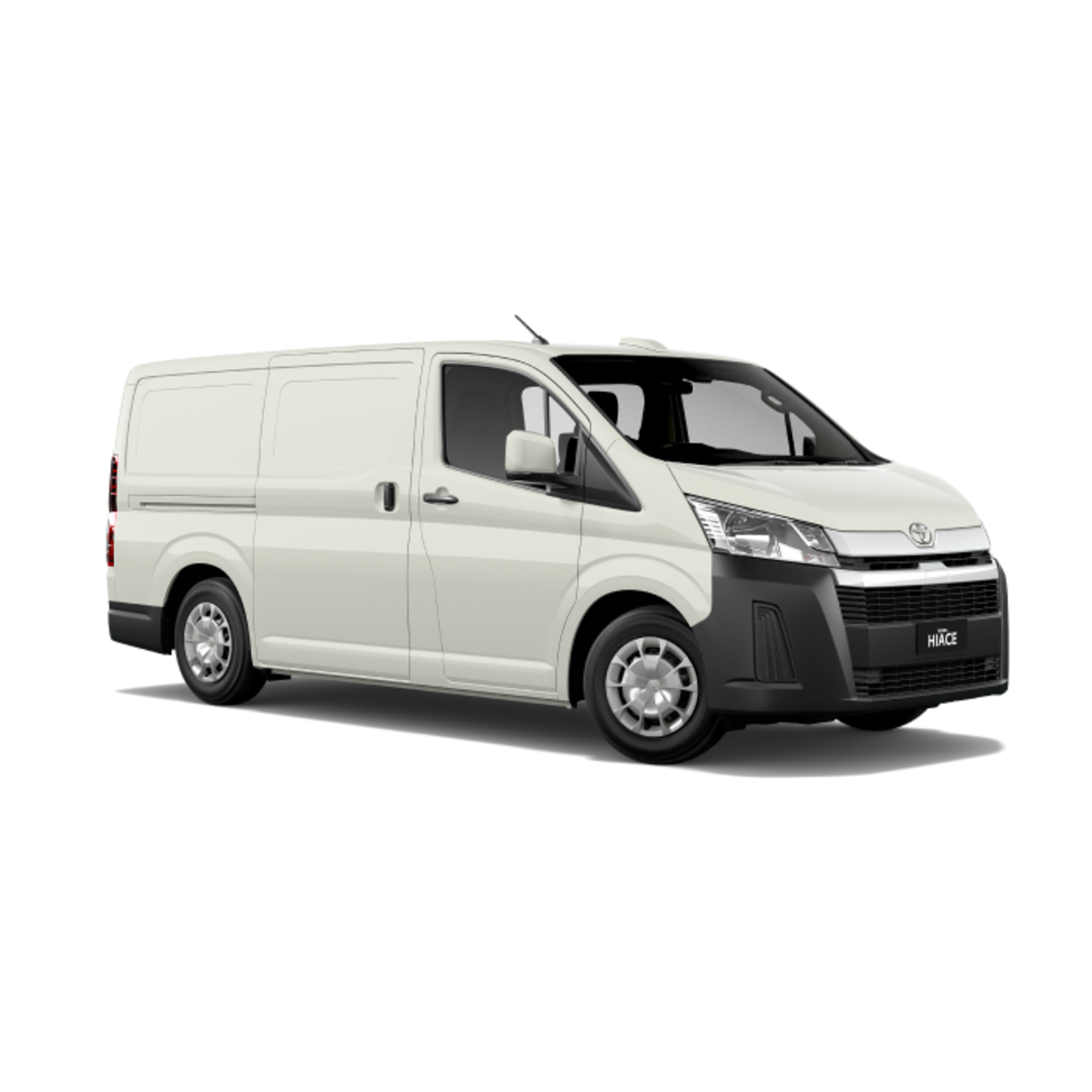 The HiAce Van is the most stripped-back, cargo-focused configuration in the range. It seats two to three people in the front cab and dedicates the entire rear to load space.
