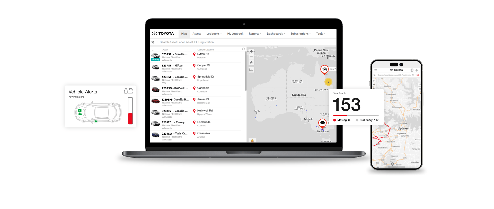 Toyota Halo is subscription-based and available for Toyota business customers only. Requires an activated DCM (until the earlier of 2033 or Telstra 4G sunset), compatible device, app installation and connection, third-party information, mobile data, and Australian network reception. GPS signal, enabled push notifications, and other factors outside Toyota's control may limit functionality. Mobile and data usage at user's cost. Features vary depending on vehicle model and subscription choice, and are subject to change. For full terms and conditions, see toyota.com.au/fleet/halo-telematics.